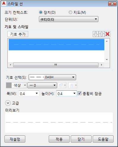 - 기호 선택에서 선에 대시 패턴을 선택합니다.