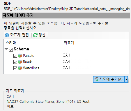 이 연습에서는 이전 연습에서 작성한 지도와 학습 1: 도면작성 도면층을 피쳐 클래스로 변환에서 저장한 SDF 파일을 사용합니다.