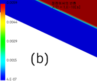 그림 2: 사전 조절이 끝날 때의 경화도를 보여주는 섹션. 여기에서 하단 표면의 열전달 계수는 (a) 5,000 및 (b) 500,000으로 설정되어 있음