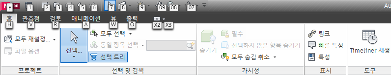 Navisworks에서는 마우스 대신 키보드를 사용하여 응용프로그램 창과 상호작용할 수 있도록 바로 가기 키 또는 키 팁을 제공합니다.