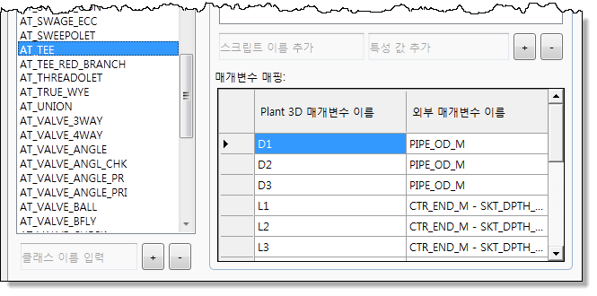 AutoPLANT 매개변수에 매핑할 Plant 3D 그래픽 스크립트 치수 매개변수를 지정합니다.