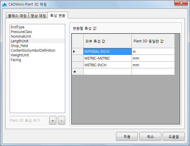 CADWorx 특성 값을 Plant 3D의 해당 특성 값으로 변환합니다.