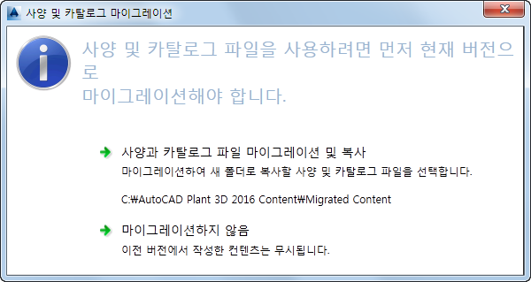 - 도구 메뉴에서 사양 및 카탈로그 마이그레이션을 클릭합니다.