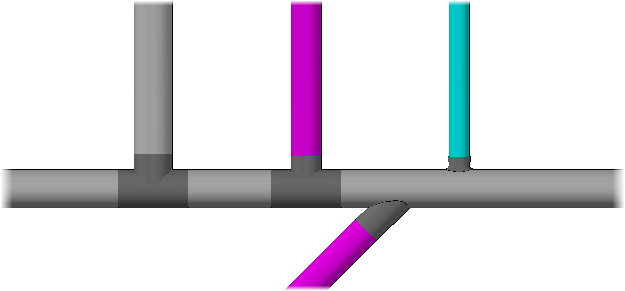 AutoCAD Plant 3D toolset 모형에서 파이프를 라우팅할 때 분기 테이블 지정에 따라 분기 및 헤더 파이프 결합 시 파이프 모형에 사용되는 부속품 유형이 결정됩니다.