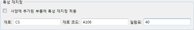 - 카탈로그 창에서 사양에 추가된 부품에 특성 재지정 적용을 선택합니다.