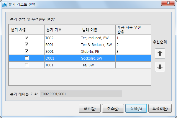 AutoCAD Plant 3D toolset에서 파이프를 라우팅하고 분기할 때 사용되는 분기 구성요소의 기본 순서를 설정합니다.
