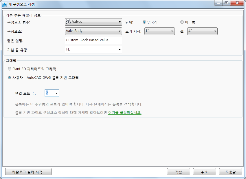 구성요소를 작성한 후에는 일반 특성을 변경할 수 없습니다. 부품을 작성한 후 카탈로그 편집기 탭에서 추가 특성을 수정할 수 있습니다.