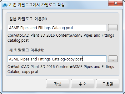 기존 카탈로그에서 카탈로그 작성 대화상자