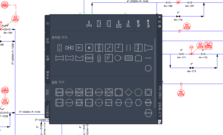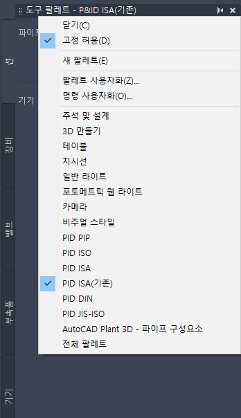 ISA 컨텐츠를 업데이트하지 않도록 선택하더라도 기존 ISA 기호 작업을 계속 수행할 수 있습니다. 프로젝트에서 기존 ISA 기호를 계속 사용하려면 도구 팔레트에서 P&ID ISA(기존) 옵션을 선택합니다.