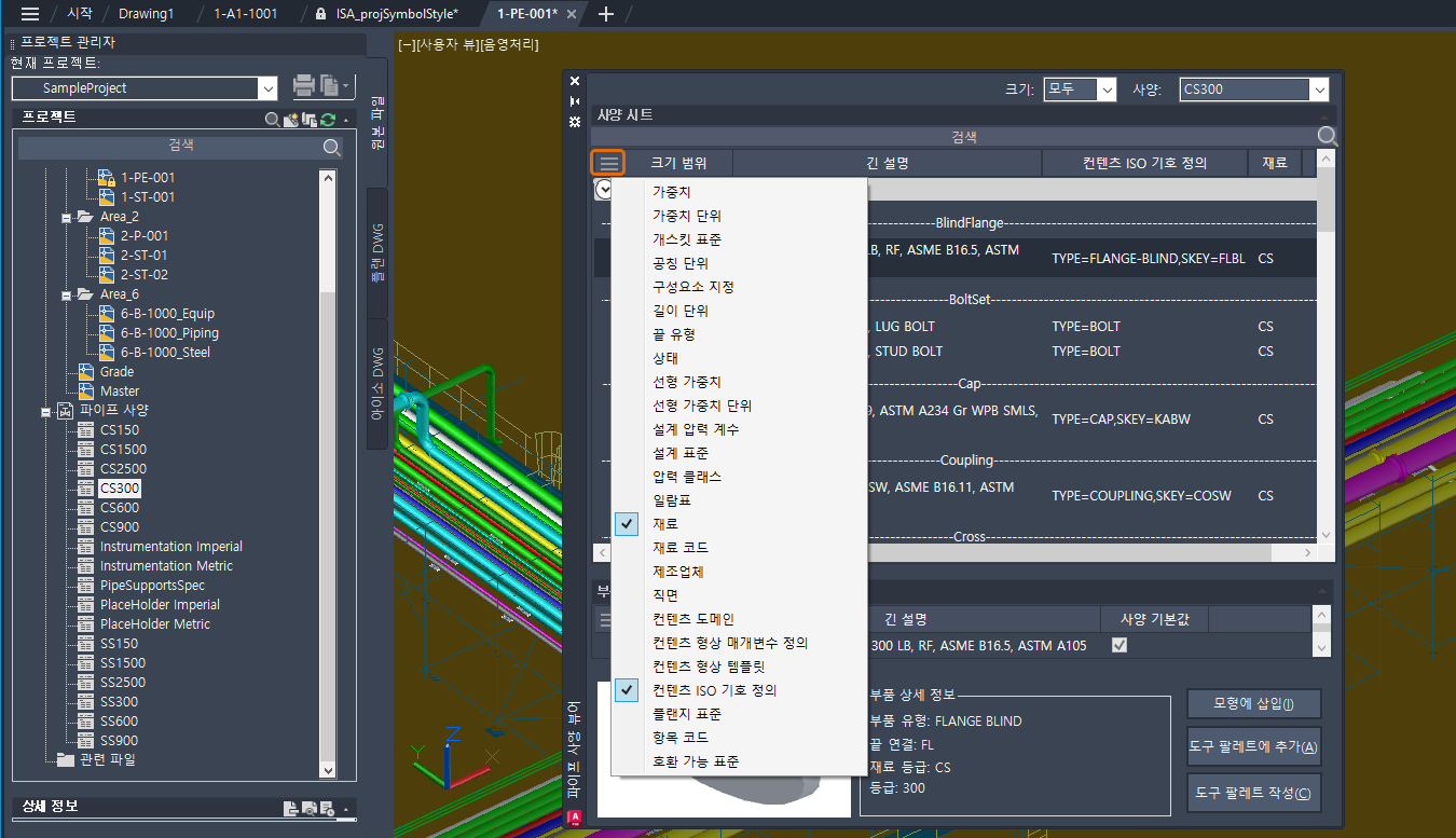 이제 파이프 사양 뷰어를 사용하여 열을 사용자화하고 화면에 표시되지 않은 특성을 검색할 수 있습니다.
