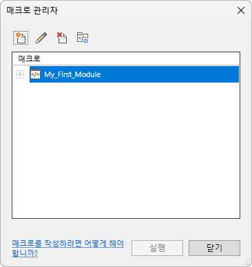 모듈(모듈에 포함된 매크로)을 수정하려면 모듈을 선택하고