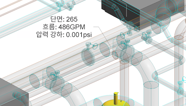해석 파이프 세그먼트는 설계 또는 제작 콘텐츠를 사용하여 관망의 흐름 경로를 나타냅니다.