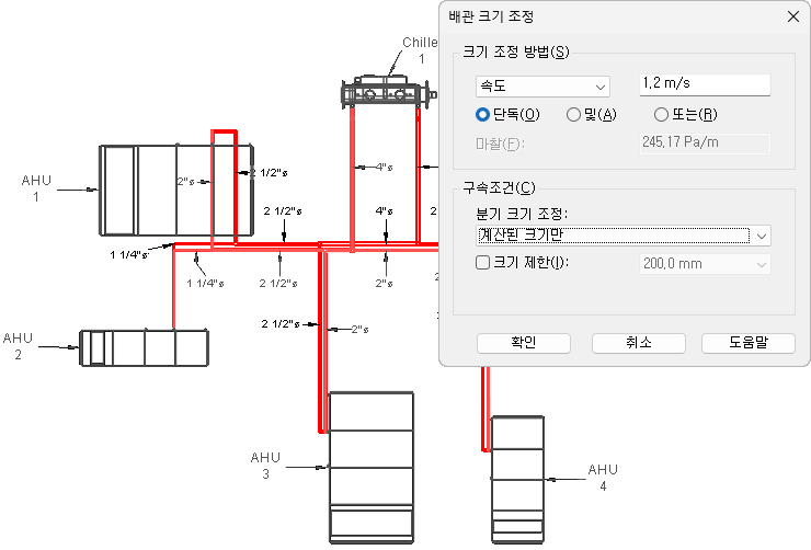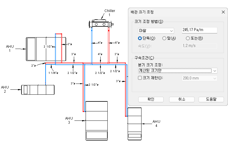 다음 이미지는 다양한 순환수 파이프 크기 조정 방법의 결과를 나타냅니다.