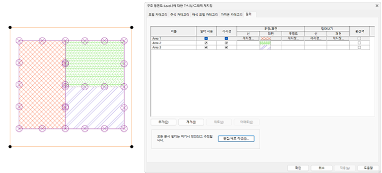 필터를 사용하여 부하 매개변수를 기준으로 평면도에서 각 면하중 경계를 식별합니다.