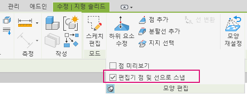모양 편집 모드에서 작업할 때 스냅 동작이 개선되어 내부 점과 모서리를 무시하고 요소의 Z 값을 스냅점으로 사용할 수 있습니다.