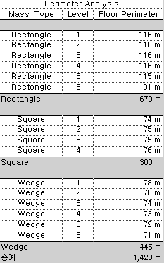 주: 결합된 인접 매스에서 매스 바닥이 겹치는 경우에도 둘레 값에 각 매스 바닥의 전체 둘레가 포함됩니다.