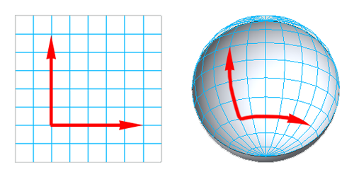 표면이 반드시 평평한 것은 아니므로 UVW 좌표계가 위치를 플롯하는 데 사용됩니다. 그러면 평평하지 않은 표면이나 양식의 등고선에 대해 그리드 조정이 매핑됩니다. 개념 설계 환경에서 사용된 UV 그리드는 XY 그리드와 유사합니다.
