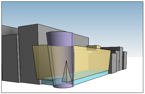 한 프로젝트에 여러 개의 매스 인스턴스(instance)를 포함할 수 있습니다. 겹침을 없애기 위해 형상 결합 도구를 사용하여 매스 인스턴스(instance)를 다른 매스 인스턴스(instance)에 결합할 수 있습니다.