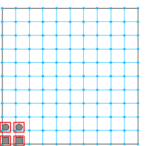 한 개 점으로 구성된 가변 구성요소 4개 |