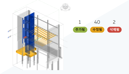 팔레트에는 추가, 수정 또는 삭제된 객체에 대한 개요가 표시되며 모델에서도 강조 표시됩니다. 표시하지 않으려는 카테고리를 선택 해제하여 추가, 수정 또는 삭제된 객체만 표시하도록 카테고리를 필터링할 수 있습니다.