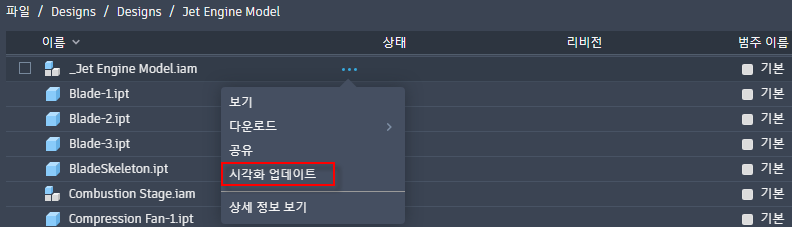 또는 파일의 상세 정보 페이지에서 사용할 수 있는 "시각화 업데이트" 명령을 선택합니다.