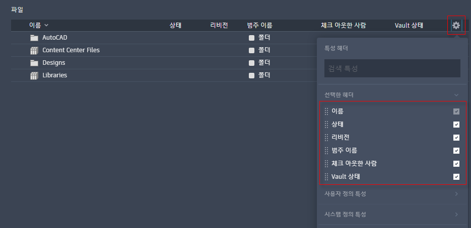 헤더의 표시 순서를 수정 또는 재정렬할 수 있으며, 시스템 생성 또는 사용자 생성 특성을 헤더에 추가할 수도 있습니다.