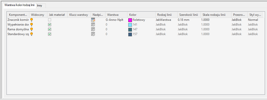 - Kliknij zakładkę Inny, aby dodać definicje kolejnego elementów. Po dodaniu wszystkich elementów kliknij dwa kolejne przyciski OK.