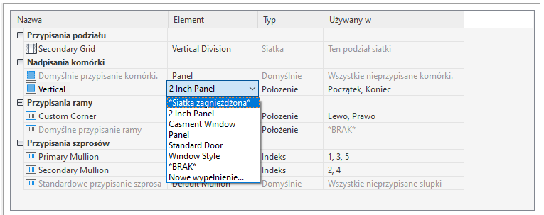 Opisana poniżej procedura pozwala utworzyć zagnieżdżoną siatkę w jednostce ściany kurtynowej. Siatka zagnieżdżona do siatka znajdująca się w innej siatce. Każda siatka zagnieżdżona ma własny podział, przypisania komórek, ramę i szprosy. Domyślnie w siatkach zagnieżdżonych rama jest wyłączona.
