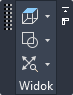 Ruchomy panel Widok umożliwia dostęp do poleceń związanych z widokami, stylami wizualnymi oraz do narzędzi Zoom i Nfragm. Panel ten nie jest domyślnie zamocowany do wstążki, więc dostęp do niego można uzyskać niezależnie od bieżącej karty wstążki. Jeśli to konieczne, ruchomy panel Widok można zamocować do karty Narzędzia główne.