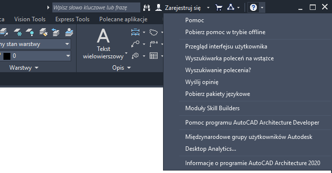 Aby otworzyć interaktywny przewodnik po interfejsie użytkownika, kliknij przycisk Pomoc na panelu InfoCenter w prawym górnym rogu okna aplikacji, a następnie kliknij przycisk Przegląd interfejsu użytkownika.