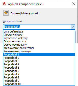 Można także kliknąć (Dopasuj istniejący szkic) i wybrać szkic w elewacji, którego komponent wyświetlania chcesz dopasować.