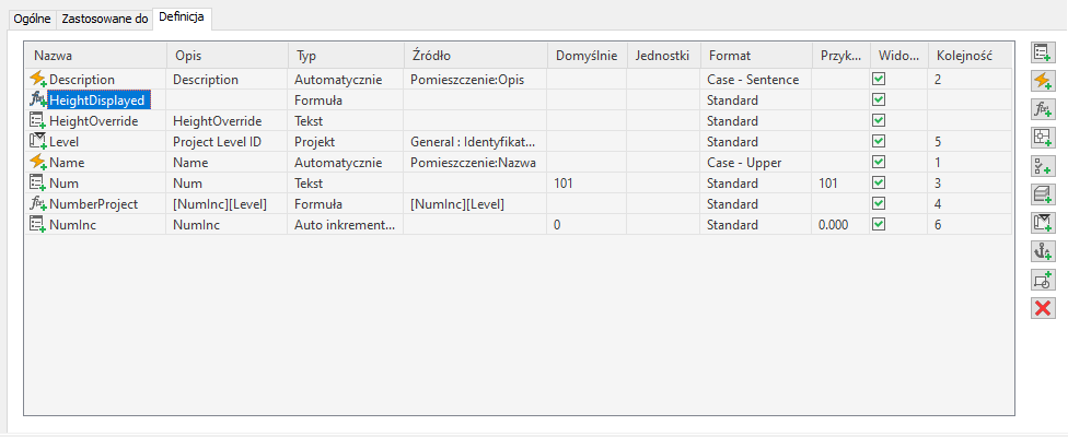 Na karcie Definicja dla definicji zestawu właściwości ObiektyPomieszczeń