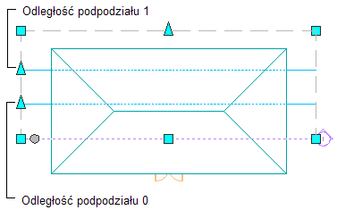 Procedura ta służy do zmiany odległości podpodziału mierzonych od linii przekroju. Zaczepiony uchwyt można przeciągnąć na określoną odległość lub podać wartość odległości.