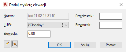 Wprowadzona wartość jest zawsze obliczana względem wybranego układu współrzędnych. Po zmianie układu współrzędnych wartość Z etykiety elewacji jest automatycznie przeliczana.