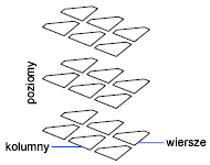 Układa kopie obiektu w wierszach (oś X), kolumnach (oś Y) i poziomach (oś Z). Szyk musi mieć przynajmniej dwa wiersze, dwie kolumny lub dwa poziomy.