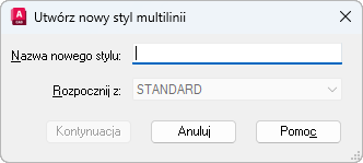 Nazywa nowy styl multilinii. Właściwości elementu i multilinii są niedostępne, aż do podania nowej nazwy i kliknięcia Kontynuuj.