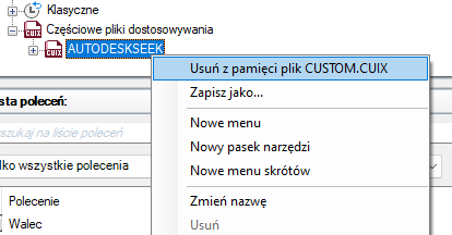 Zostaną wyświetlone wszystkie częściowe pliki CUIx wczytane w głównym pliku CUIx.