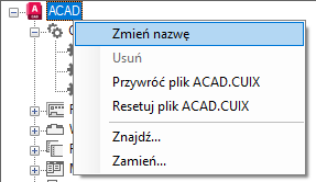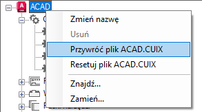Uwaga: Resetować można tylko pliki CUIx znajdujące się w folderze UserDataCache w lokalizacji instalacji programu.