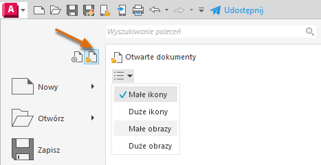 , a następnie kliknij ikonę Otwarte dokumenty.