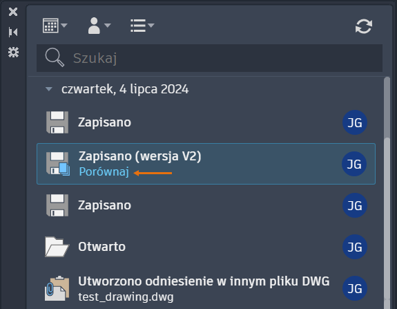 Korzystaj z funkcji Spostrzeżenia dotyczące aktywności, aby przeglądać wkład członków zespołu we współdzielonych plikach rysunków, porównywać historię wersji i współpracować za pomocą różnych produktów AutoCAD.