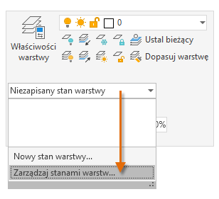 Bieżące ustawienia warstwy można zapisać jako stan warstw, który można później przywrócić lub zaimportować do innych rysunków. Stan warstw jest podobny do zdjęcia istniejących warstw i ustawień warstw zrobionego w czasie tworzenia stanu warstw.