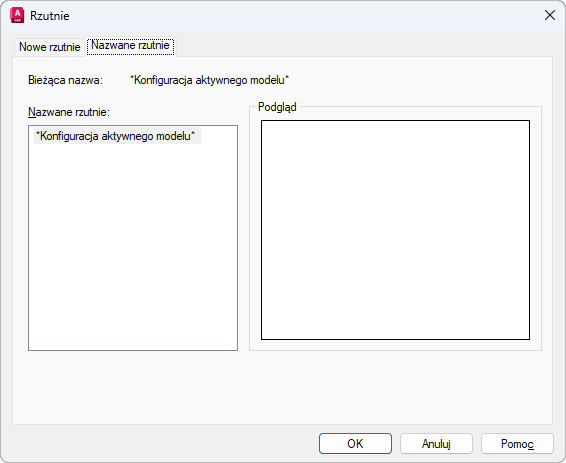 Wyświetla podgląd wybranej konfiguracji rzutni i domyślne widoki przypisane do każdej rzutni w konfiguracji.