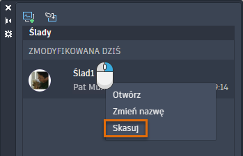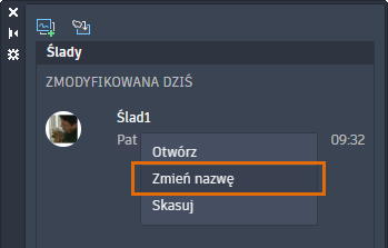 Kliknij prawym przyciskiem myszy ślad, a następnie kliknij polecenie Zmień nazwę.