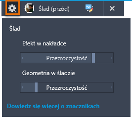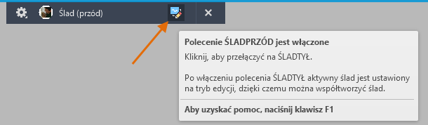 Bieżący tryb jest wskazany na pasku narzędzi Ślad.
