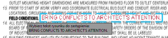 Po wyświetleniu monitu wybierz tekst FIELD CONDITIONS, aby wybrać tekst, który ma zostać zastąpiony.
