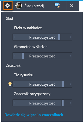 Narzędzie Asystent znaczników jest dostępne tylko w trybie Ślad z tyłu. Pozwala to aktualizować lub wstawiać geometrię rysunku na podstawie zaimportowanych znaczników.
