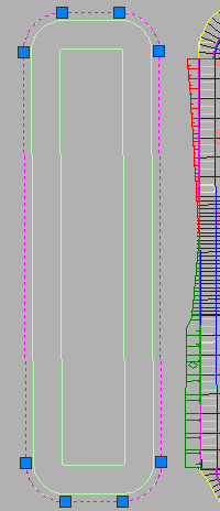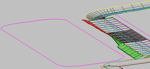 W tym przykładzie rozpoczęciem projektowania zbiornika wodnego będzie użycie polecenia Utwórz linie charakterystyczne z obiektów w celu wybrania najbardziej zewnętrznej polilinii zbiornika wodnego, jak pokazano na rysunku 38.