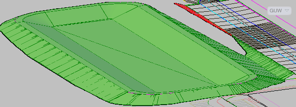 Ostatnią czynnością jest użycie polecenia Utwórz wypełnienie w celu dodania dna zbiornika wodnego. Należy zauważyć, że wypełnienia można użyć tylko do wypełniania obszaru ograniczonego liniami charakterystycznymi. Dno zbiornika wodnego zostało ukończone, jak pokazano na rysunku 41.