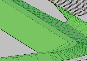 W przeszłości oczyszczanie obszaru między skarpami stanowiło obowiązek projektanta, teraz to zadanie wykonuje automatycznie program Autodesk Civil 3D. Ponadto dostępne są narzędzia operujące na objętości skarpy do szybkiego analizowania i dopasowywania różnych scenariuszy projektowych.