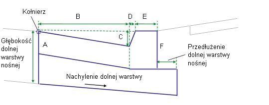 Głębokość dolnej warstwy nośnej w punkcie kołnierzowym. W przypadku braku dolnej warstwy nośnej należy wprowadzić zero.